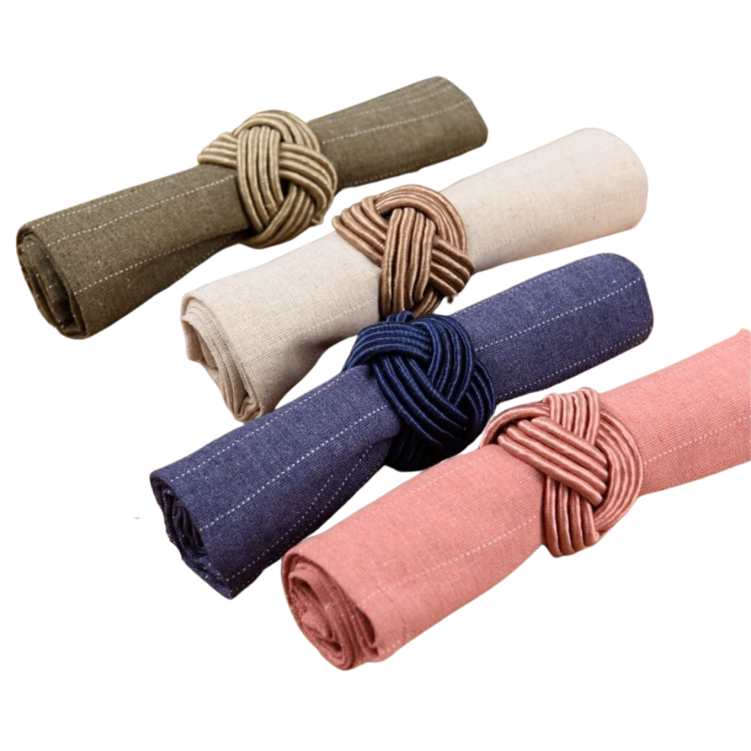 Guardanapo produzido com tecido de característica rústica, remetendo aconchego e um estilo integrado a natureza. Sua estrutura possui fio maquinetado por toda a sua extensão, contrastando com a cor base do tecido, deixando-o único e delicado.